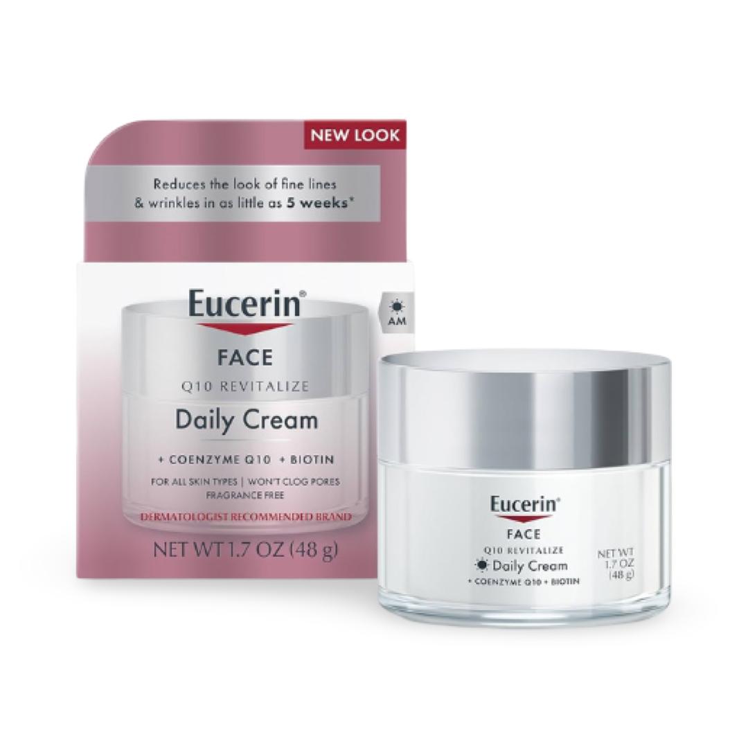 Eucerin Q10 Anti-Wrinkle Face Cream is formulated to help protect against the damaging effects of free radicals, and firms and moisturizes for softer, smoother looking skin. This anti wrinkle face moisturizer helps to reduce the look of fine lines and wrinkles in as little as 5 weeks This Eucerin daily facial moisturizer can be used alone or under make-up as a hydrating base. To use, apply this Eucerin cream face moisturizer to the face and neck area in the morning and evening.