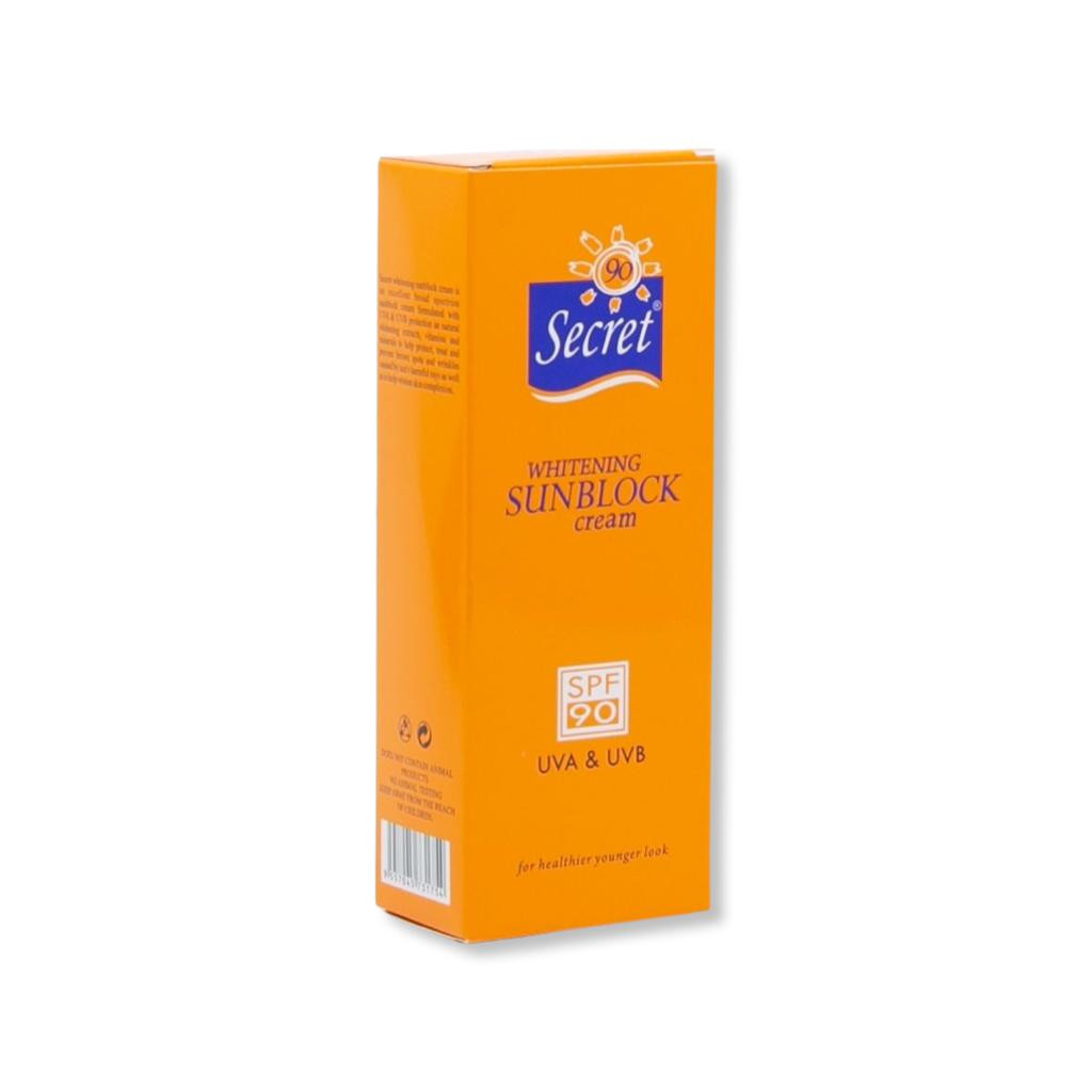 Sunblock cream with skin-whitening minerals and extracts.Effective anti-ageing cream that helps prevent wrinkles and dark spots.SPF 90 gives protection from UVA/UVB rays.Ideal for daily use before sun exposure.